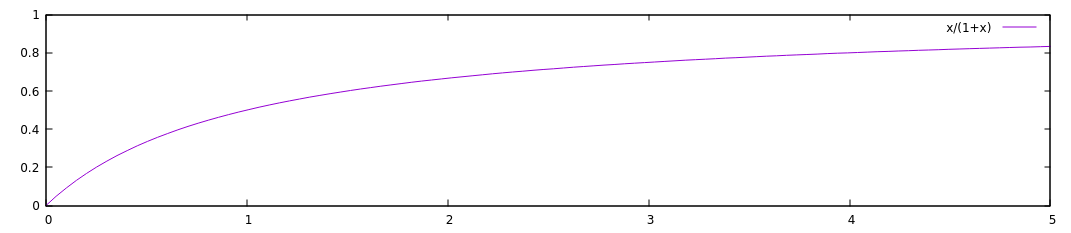 Прим. пер. - при малых значениях х функция x/(1+x) ведёт себя примерно как х, при больших х - стремится к единице. График функции: