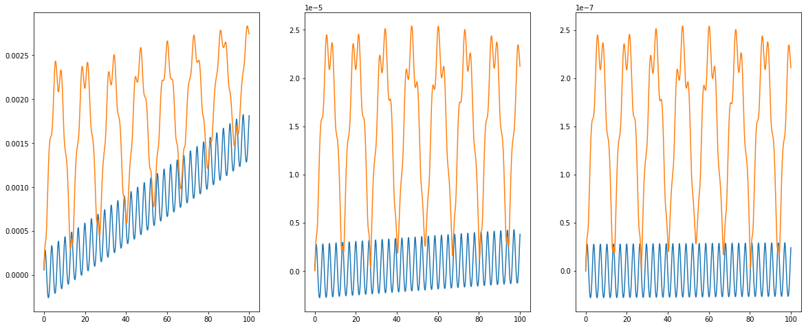 P.P.S. Ниже графики для исправленного метода. Точность лучше для любого шага по времени, но шаг 0.1 всё равно можно считать минимально допустимым.