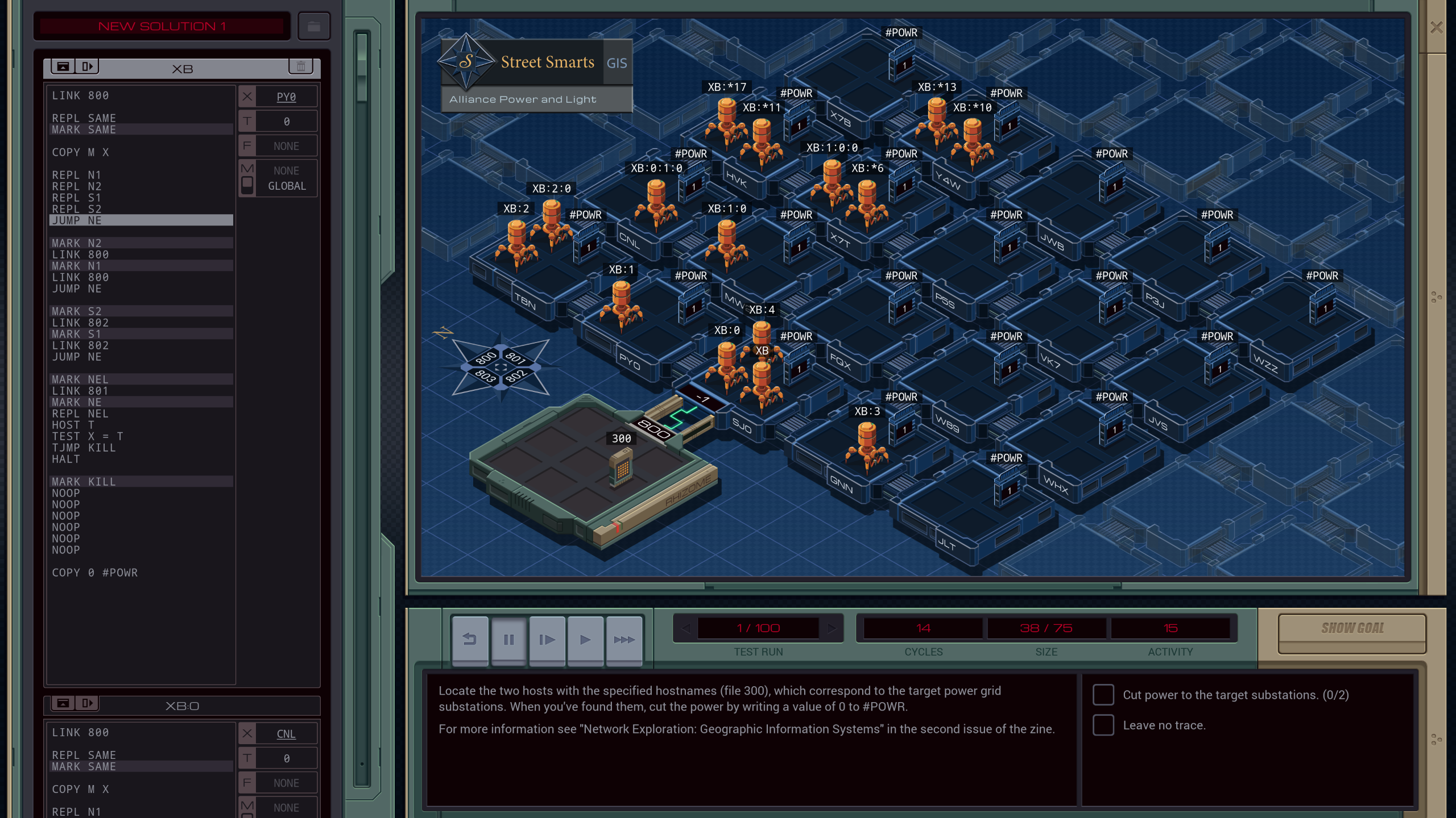 Надо не только программировать, но и располагать на микросхеме элементы и раскидывать задачки между ними. Прям как в tis-100, но количество вычислителей и конфигурацию соединений мы выбираем сами. На мой взгляд, очень удачное сочетание - микс программирования и пространственной головоломки. Ближе к концу игры бывает, что пространства не хватает и становится сложно.