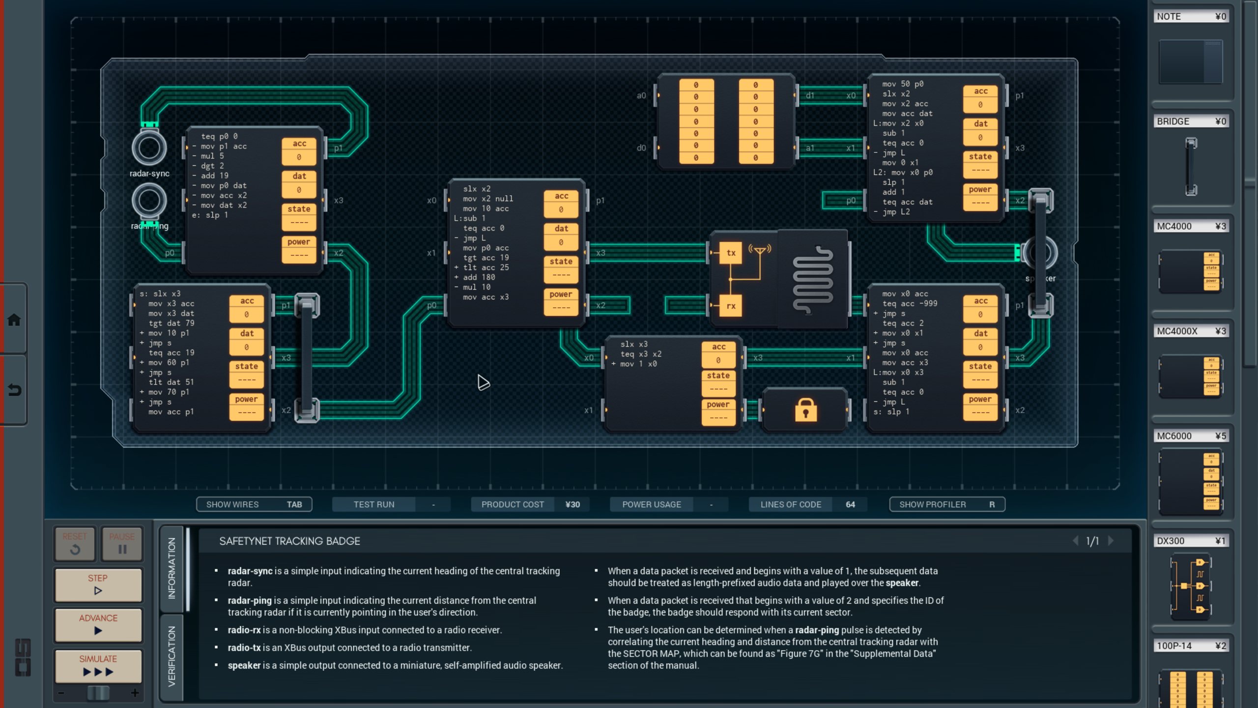 К каждой игре в дополнение идут журналы в pdf, и их надо читать - там будут описание команд ассемблера, особенности работы процессора и т.п. Ещё скажу, что они добавляют атмосферы игре. Особенно это чувствовалось в SHENZHEN I/O: я на одном мониторе открывал игру и на другом pdf с описанием работы компонентов. Появлялось ощущение, что вот я делаю дизайн реальной микросхемы и вообще как самый настоящий разработчик что-то проектирую (кхм-кхм, как будто мне IRL этого не хватает). На седьмой странице мануала есть visa application form, самое то для погружения :P